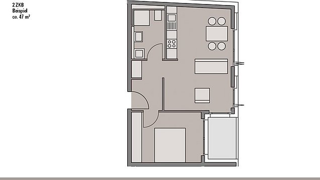 Zu einer optimalen Aufteilung der 2-Zimmer-Wohnungen gesellt sich in Desiro eine vorbildliche Ausstattung. Bodengleiche Duschbäder, Echtholzparkett und zeitlos schöne Einbauküchen in den Wohnungen bis 70 m² runden das angenehme Ambiente ab. Die Loggien oder Balkone bieten zusätzlichen Wohnraum, der zum Entspannen einlädt.