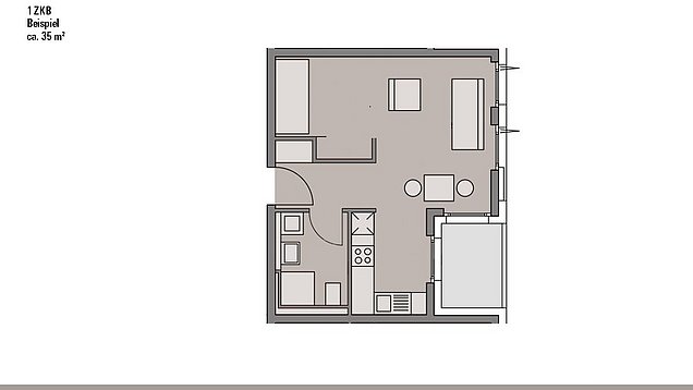 Die 1-Zimmer-Wohnungen in Desiro mit ca. 35 m² sind wahre Raumwunder. Denn jeder Zentimeter wird optimal genutzt. Balkone oder Loggien erweitern die Flächen nach Außen für viel Licht und Luft.